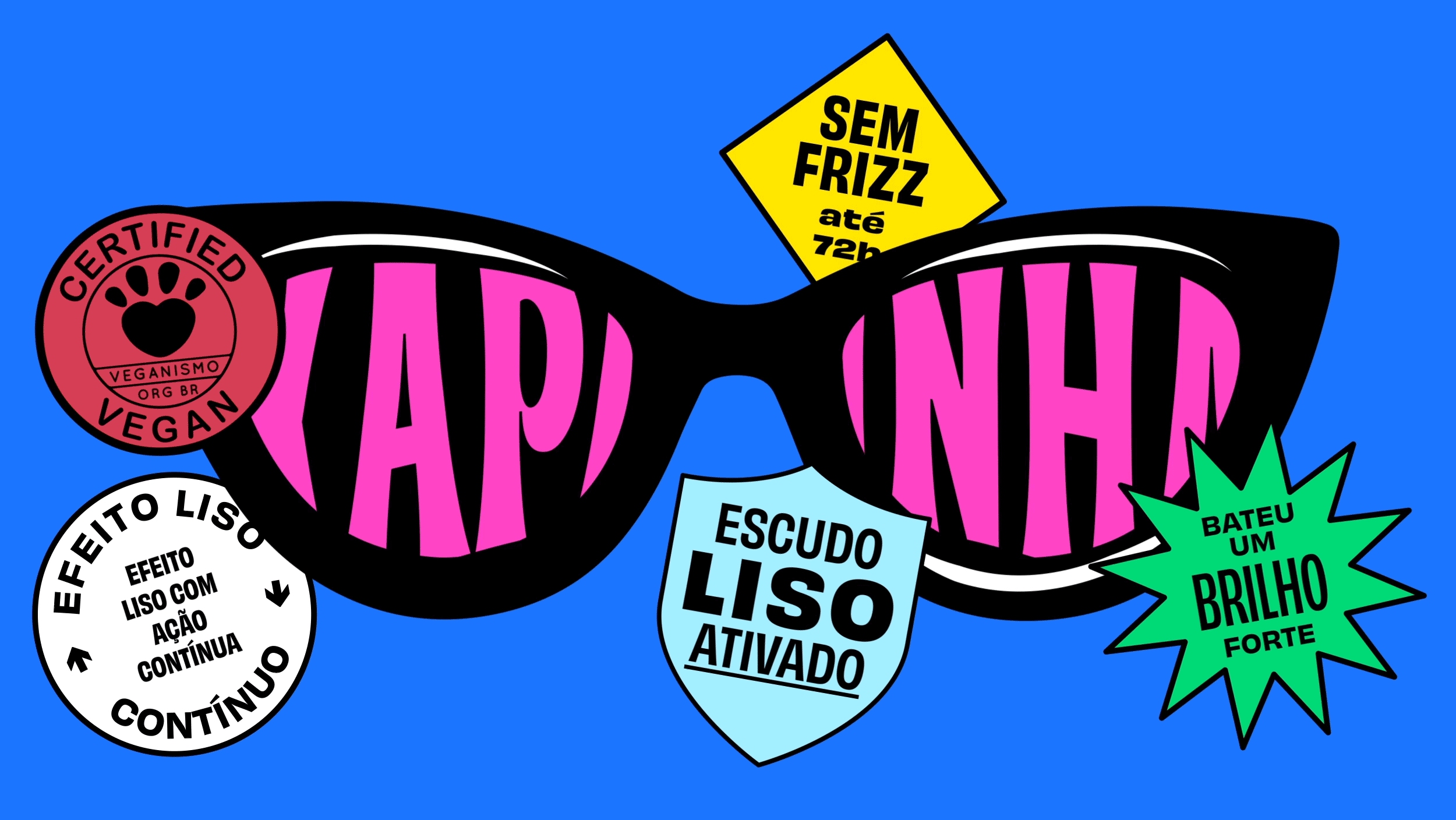 Xapadinha é uma linha de produtos criada pela Lola para cabelos lisos, sejam eles naturais ou alisados. Nela você uma encontra muitas opções para deixar os fios bem lisos, sem frizz e iluminados. Tem shampoo, máscaras, óleos e outras opções. Pra entrar na onda, usamos cores neon, frases divertidas, e fontes incomuns. Dá uma olhada no resultado e viaje com a gente.