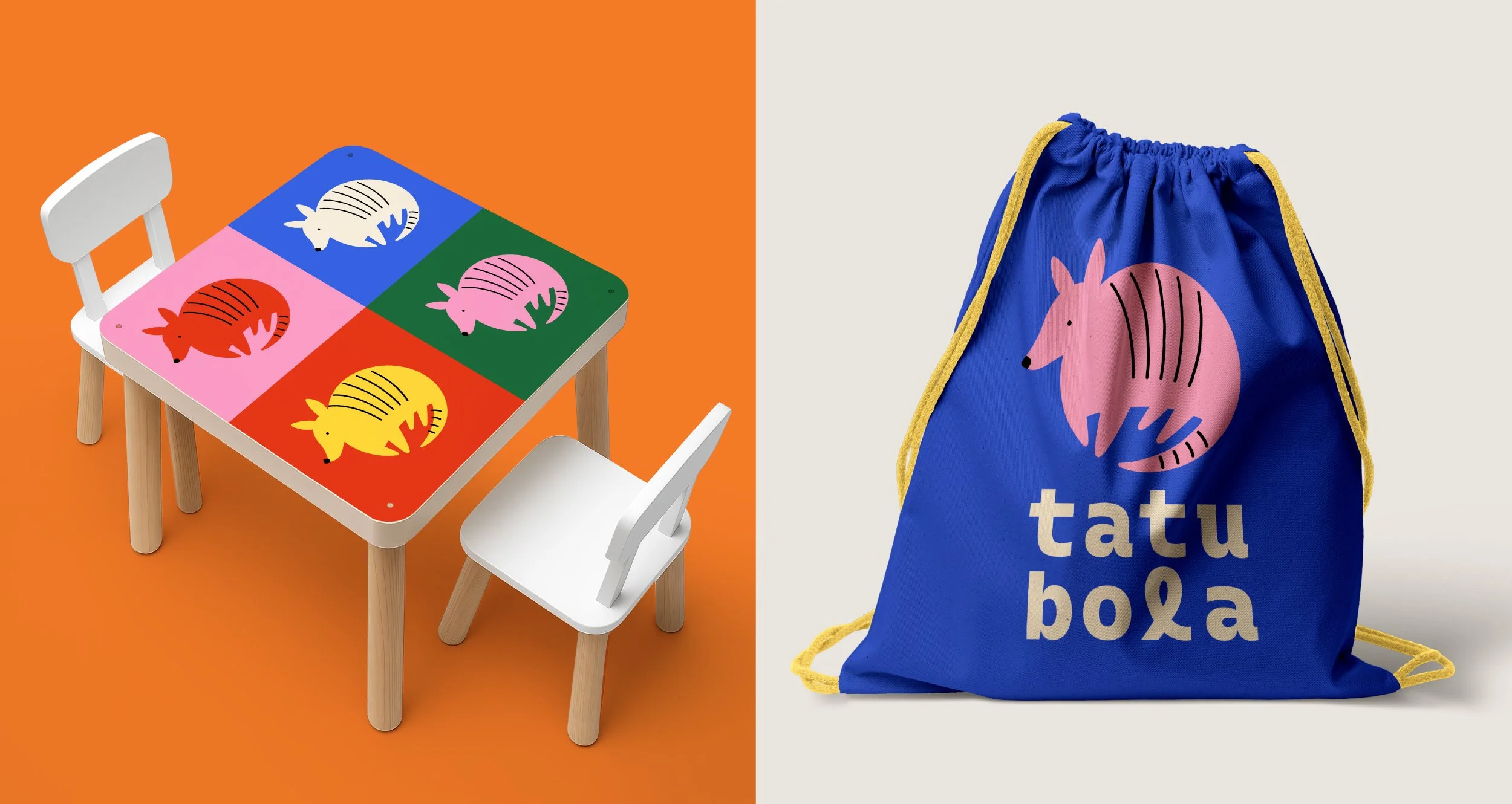 A Foresti Design desenvolveu sua marca e identidade visual a partir de um símbolo que é também personagem: um tatu simpático, em movimento, capaz de aparecer em diferentes posições. O logotipo Tatu Bola adota uma tipografia simples e versátil, enquanto a paleta de cores vibrante reforça a energia e o espírito lúdico do selo. O resultado é uma marca viva e acolhedora, que aproxima as crianças dos livros e faz da leitura uma experiência alegre. Nas feiras e bienais, o Tatu é sucesso garantido — todos querem uma foto com o mascote ou levar um livro para casa.